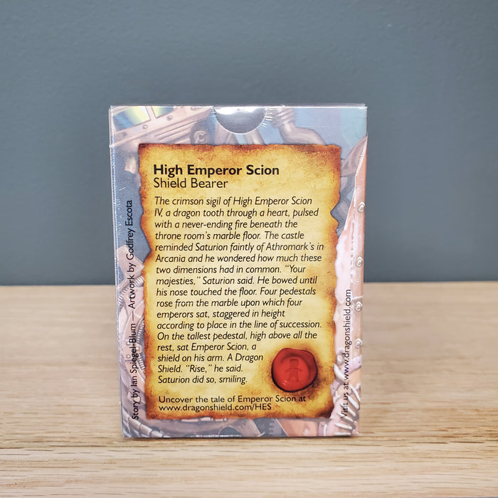Clear front & Emperor Scion of Arcania's Coat-of-Arms on the back. Artwork by Godfrey Escota.