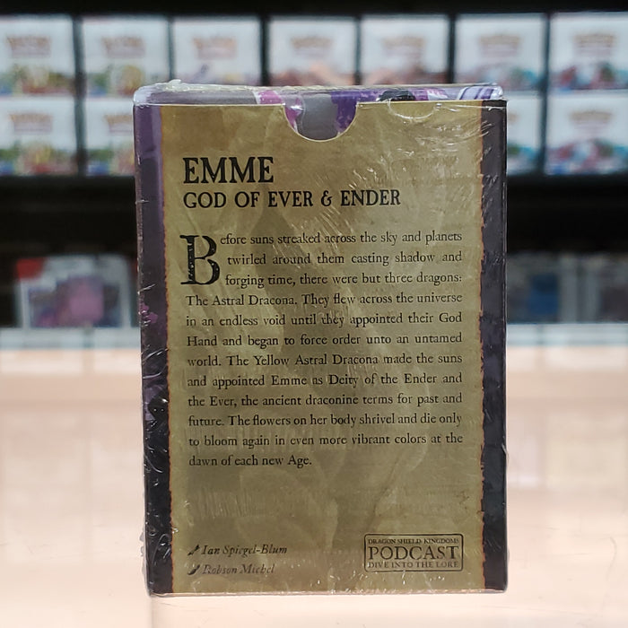 The sturdy cardboard box fits 75+ single sleeved cards or 65+ double sleeved cards. Every box has a label on the top for personalization.
