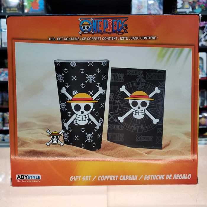 One Piece Gift Set - Glass Cup With Pin & Pocket Skull Notebook