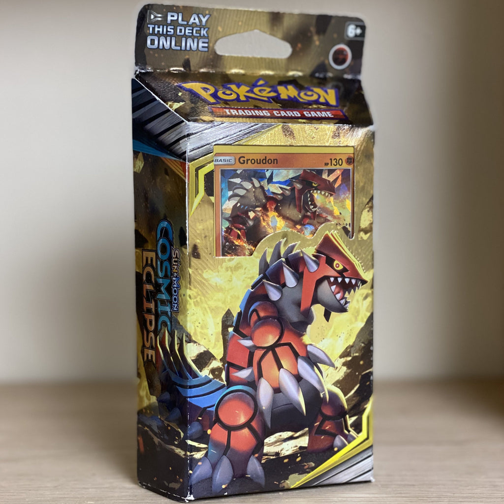 The Legendary Groudon is ready to smash foes, with Garchomp at its side! Use Seismitoad’s Bulldoze Ability for power searches, and call on Lady for extra Energy and Throh for big attacks. Strike from above with the Towering Heights theme deck!