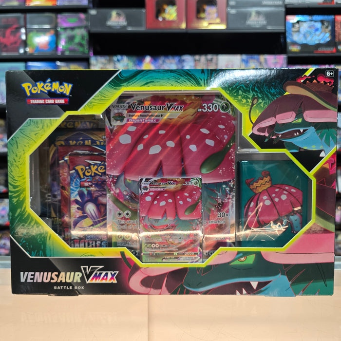 The Pokémon TCG: Venusaur VMAX Battle Box includes: