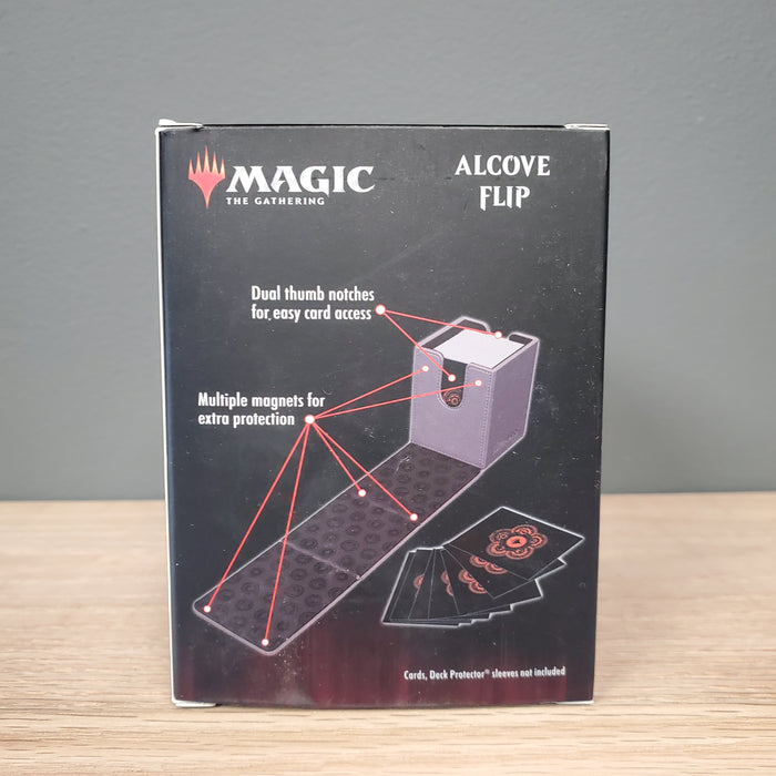 The Mana 7 Island Alcove Flip Deck Box® for Magic: The Gathering features a vibrant, full-color leatherette finish with a stylized debossed design and spot mirror foil accents. The strong magnetic closure provides secure storage while the dual thumb notches allow for easy access to your deck. This Deck Box® holds up to 100 standard size trading cards double-sleeved in Ultra PRO Deck Protector® sleeves.